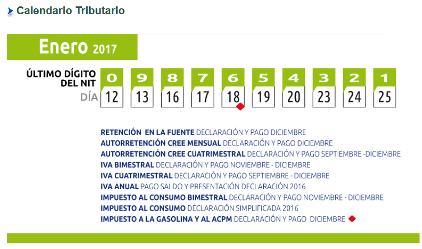 CALENDARIO TRIBUTARIO ENERO 2017