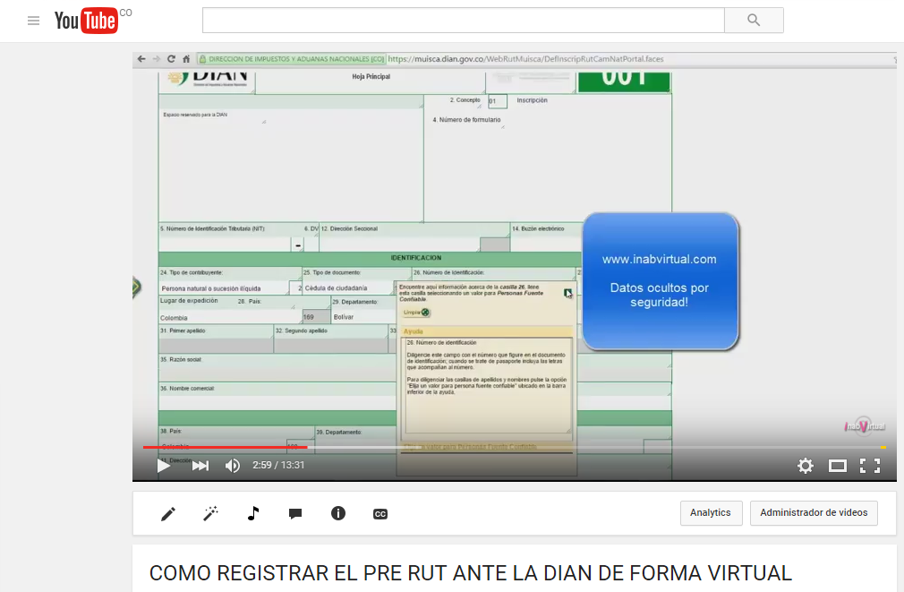 Video tutorial: COMO REGISTRAR PRE RUT ANTE LA DIAN DE FORMA VIRTUAL