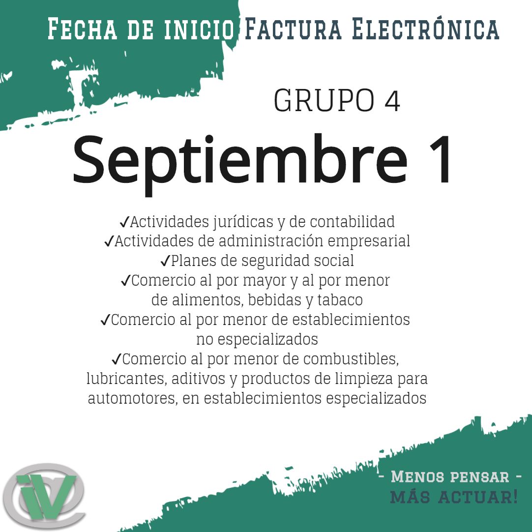 Para el Grupo 4 la fecha máxima para comenzar a facturar electrónicamente es el primero de septiembre de 2020